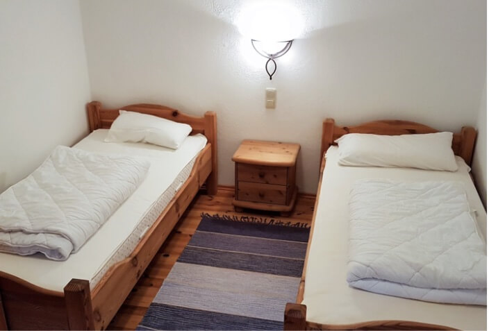 Die Unterbringung in den Bungalows eignet sich besonders gut für Familien mit Kindern (vier bis sechs Personen). Immer wieder wird die kinderfreundliche Einrichtung gelobt, weil große Wiesenflächen viele Spielmöglichkeiten bieten. Der Keller ist mit Sauna und Wärmekabine ausgestattet.